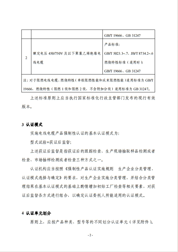 電線電纜 強制性產品認證實施規則